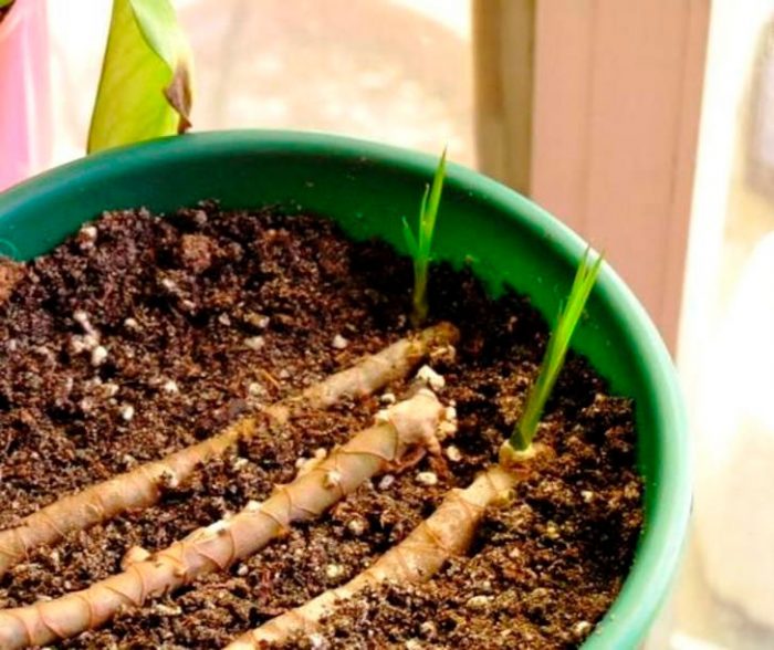 Кімнатну драцену можна розмножити і відрізками стебла. Ця процедура дуже схожа на живцювання. Вам знадобиться потужний молодий стебло, який гострим продезинфицированным ножем поділяють на кілька відрізків. Вони повинні досягати в довжину від 30 до 50 мм. Зверніть увагу на те, що на кожному відрізку має бути мінімум 2 нирки.