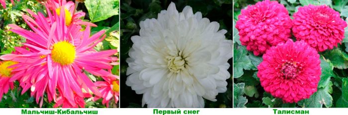 - Талісман. Кущик низький, всього близько 0,25 метрів. Темно-малинові маленькі суцвіття досягають в поперечнику приблизно 20 мм.