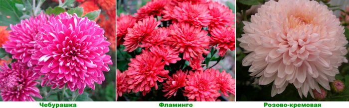 - Фламінго. Висота кущика приблизно 0,5 метрів. В поперечнику блідо-рожеві суцвіття досягають близько 75 міліметрів. Серединка у суцвіття більш насиченого забарвлення.