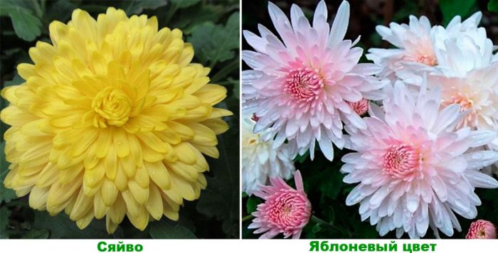 - Сяйво. Сорт, створений українськими селекціонерами, у висоту досягає близько 0,6 метрів. Діаметр великих суцвіть яєчно-жовтого відтінку близько 80 мм.