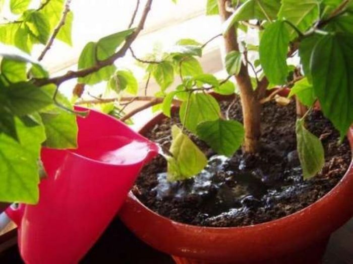 - В'янення куща. Як правило, це відбувається із-за того, що куща не вистачає води. Також це може статися і з нещодавно пересадженим кущем, який ще не встиг прижитися. Ще це буває пов'язано з гниттям коренів. У цьому випадку вийміть квітка з горщика, видаліть з його кореневої системи залишки ґрунтосуміші і на 30 хвилин занурте її в слабкий розчин марганцевого калію. Оброблене рослину висаджують в новий не дуже великий горщик, який наповнюють легкої почвосмесью (в підходящу для гибискуса землесуміш треба всипати вермикуліт). Якщо все зробити правильно і своєчасно, тоді можливо у вас вийде врятувати квітку.