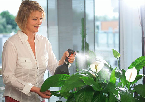 - Вологість повітря. Вона повинна бути високою. Горщик з кущем рекомендується встановити на вологий керамзит, яку всипають в піддон, а ще спатіфілум треба систематично зволожувати з обприскувача. Коли на нього сформуються бутони, обприскування треба буде проводити вкрай обережно, щоб краплі води не потрапили на них.