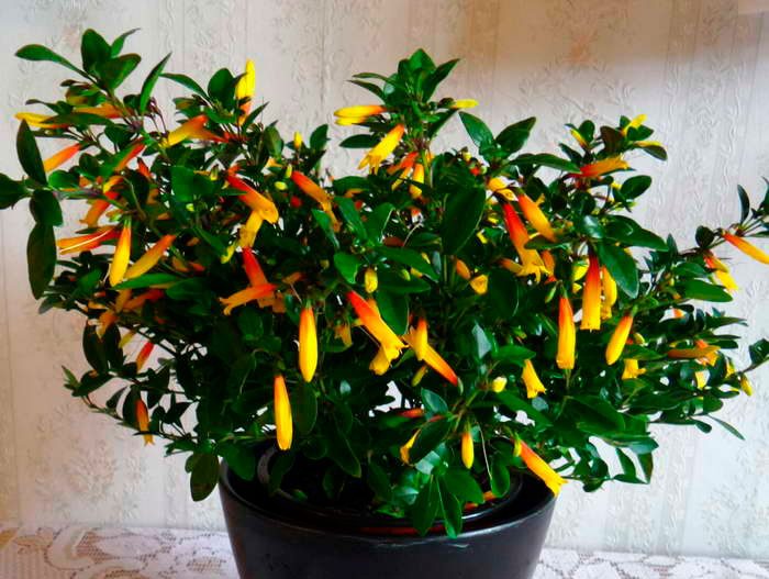 Не дуже високий кущик, як правило, у висоту він сягає понад 0,5 м. Його розгалужені пагони, а форма листових пластин овальна. Цвіте така рослина дуже пишно і ефектно, завдяки двокольоровому забарвленню квіток: біля основи вони пофарбовані в червоний колір, а вище він змінюється на жовтий.