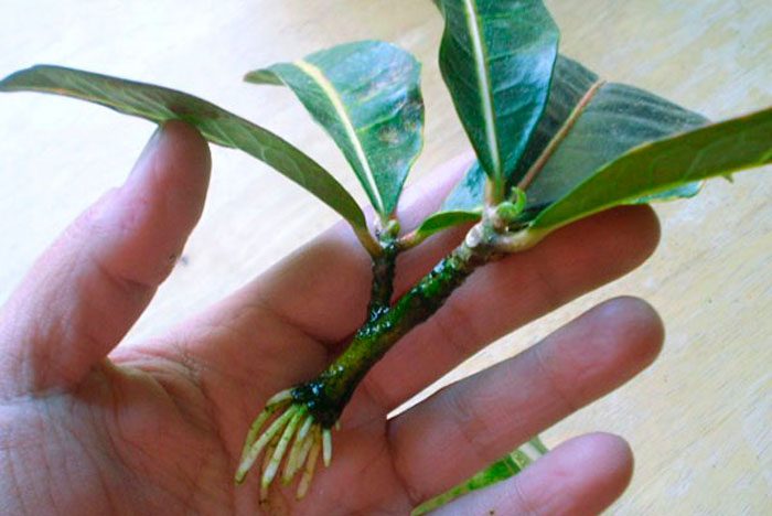 Розмножити цю квітку можна і живцюванням. Легше і швидше всього вкорінюється верхівковий держак, довжина якого повинна бути від 60 до 100 мм. В тому випадку, коли потрібно отримати відразу декілька живців, втеча поділяють на кілька частин, при цьому враховуючи, що на кожному отриманому черешку повинна бути одна здорова листова пластина, а також не менше одного міжвузля. Швидше за все коріння дають напіводеревіли або здерев'янілі живці. Місця зрізів треба промити проточною водою, щоб видалити з них виділяється молочний сік є отруйним. Після цього живці залишають на 3 години на відкритому повітрі, за цей час місця зрізів встигнуть підсохнути.