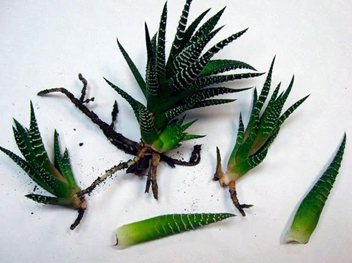 Якщо у бічній розетки хавортії вже утворилися коріння, її слід обережно відокремити від батьківського куща і відразу ж посадити в горщик, заповнений зволоженим субстратом. У тому разі, коли відокремлені були живці з двома або трьома листовими пластинами, які не мають корінців, місце зрізу треба буде обробити деревною золою, після чого їх підсушують протягом декількох діб, а потім висаджують для вкорінення у зволожений пісок. Після того як у них утворюються корені, їх пересаджують в горщик, заповнений субстратом. Листовий держак потребує такої ж процедури. Після обрізки його залишають для підсушування на відкритому повітрі на кілька діб, а потім висаджують для вкорінення в пісок або пухкий субстрат. До тих пір, поки не виростуть корінці, поливати субстрат в горщику не треба, його треба лише трохи зволожувати з обприскувача. Ємність не слід накривати зверху ні плівкою, ні склом справа в тому, що в таких парникових умовах велика ймовірність того, що держак загниє. Для розмноження добре підходить весняний час.