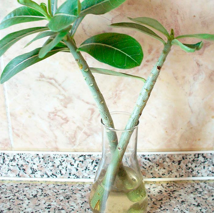 Для щеплення такої культури можна використовувати інший аденіум або Олеандр. Зробіть надрізи на підщепі та підщепі за допомогою дуже гострого ножа, потім їх поєднують одне з одним, а потім рослини міцно скріплюють (можна скористатися спеціальним спреєм). Слідкуйте за тим, щоб температура повітря в кімнаті не була менше 30 градусів, вологість повітря повинна бути високою, а ще знадобиться яскраве освітлення. Новий кущик треба захищати від прямих променів сонця, а паростки на підщепі потрібно відразу ж обривати.