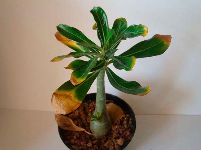 Аденіум може почати втрачати листя з-за того, що в кімнаті дуже холодно, або його помістили в незвичні умови, а також це може статися із-за протягу. Щоб врятувати квітку треба почати за ним правильно доглядати.