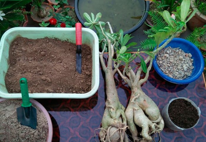 Підгодівлю аденіума проводять у весняний, літній і на початку осіннього періоду, роблять це не більше ніж 1 раз у 4 тижні. Для цього використовують добриво для кімнатних рослин, при цьому концентрація розчину повинна бути від 1,5 до 2 відсотків.