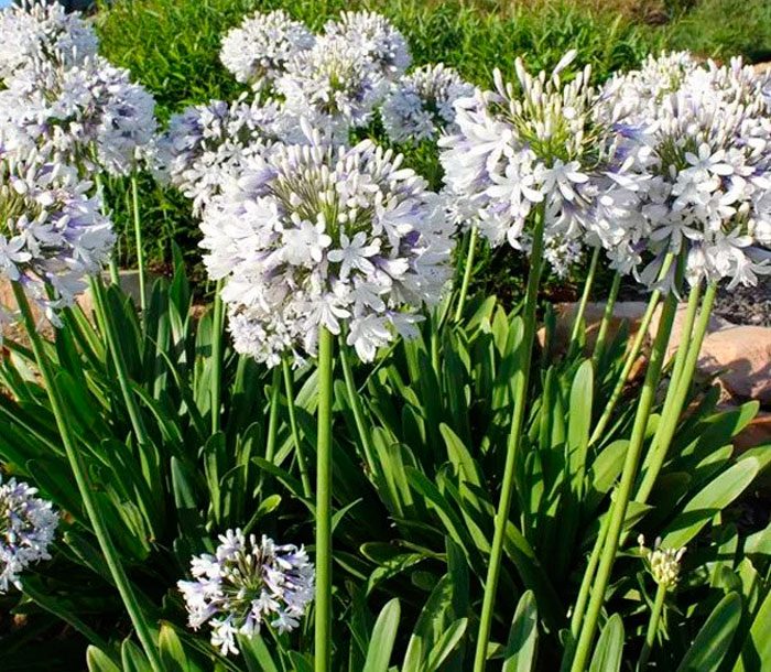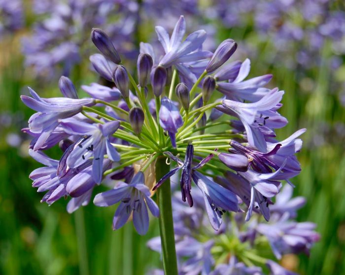 Кореневище у агапантуса недовге і повзуче, при цьому м'ясисті корінці досить товсті. Зібрана в прикореневу розетку листя довга і вона має лінійну форму. В період цвітіння формується потужний і порівняно високий квітконіс, який виходить з листової розетки. Його верхівка прикрашена білими, насичено-блакитними або синьо-ліловими квітами. Суцвіття-парасольки до свого складу включають воронкоподібні квітки. Тривалість цвітіння може доходити до восьми тижнів, так як квітки розпускаються по черзі. На правильно розвивається дорослому кущі може сформуватися близько 150 квіток.