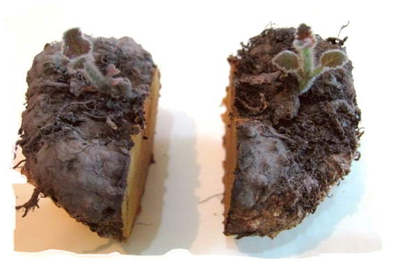 Бульба дорослої рослини також можна поділити на кілька частин. Після цього треба почекати поки місця зрізів злегка підсохнуть і опудрить їх подрібненим деревним вугіллям. Потім деленко висаджують в індивідуальні ємності.