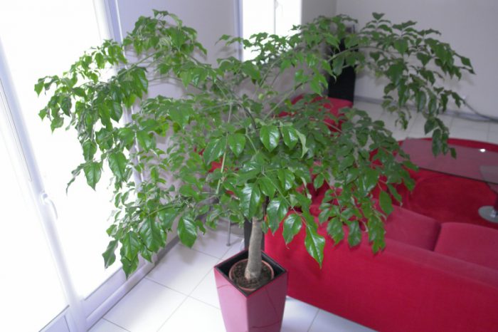 Така рослина являє собою компактне дерево з тоненьким чітко вираженим стовбуром і облиственій кроною. Перисті блискучі листові пластини досить великого розміру пофарбовані в зелений колір. Таким рослиною рекомендується прикрашати світлу і досить велику кімнату.