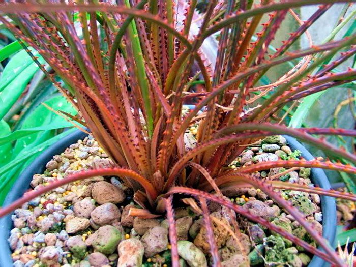 Таке велике багаторічна рослина є розеткові, на краях вузеньких листя знаходяться численні шипи. З листової розетки виростають квіточки. Для їх вирощування підходять просторі прохолодні кімнати, оранжереї або зимові сади. Підходить для вирощування в якості ампельної рослини.