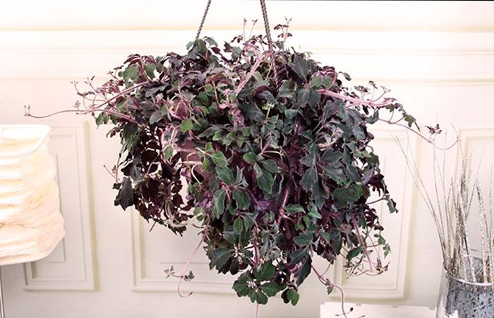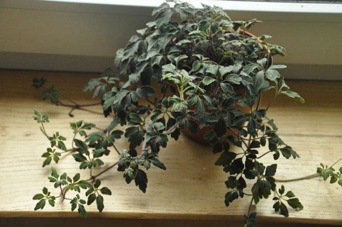 В домашніх умовах квітникарі вирощують лише один вид такого рослини ― микания трійчаста (Mikania ternata). Це трав'яниста рослина є многолетником. У молоденьких примірників пагони прямостоячі, але з віком вони стають вилягають. Його вирощують в якості ампельної рослини, для цього використовують спеціальні кошики, а також можна обвивати стебла навколо опори. Пальчасто-складні листові пластини складаються з п'яти сегментів, що мають ромбічну форму. Листочок, що знаходиться вгорі, найбільш великої, так, його довжина приблизно 5 сантиметрів. А 2 листочка, що знаходяться в середині, мають довжину 2,5–3 сантиметри, а 2 нижніх ― 1,5–2 сантиметри. Поверхня листових пластин бархатиста і є виїмки по краях, тоненькі черешки пофарбовані в коричневий колір. Лицьова поверхня листя має темно-зеленим забарвленням і є червоні прожилки, що проходять уздовж жилок, а виворітна ― пурпурова.