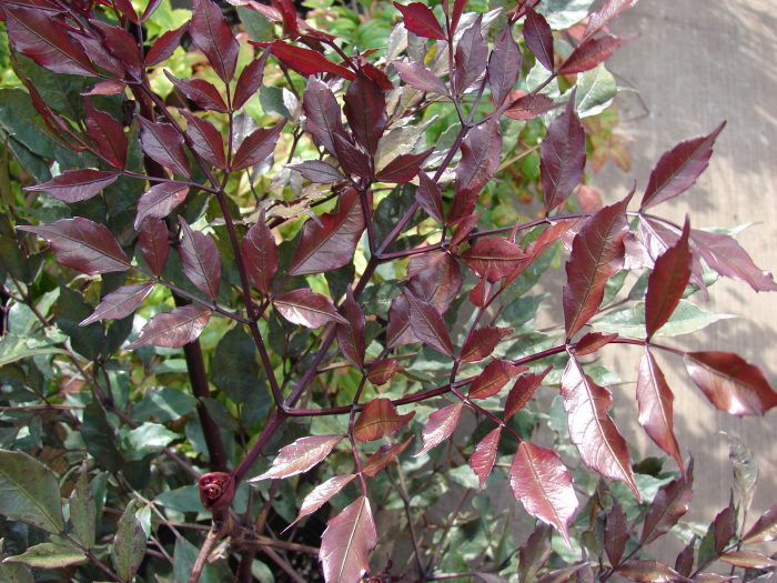 Цей вічнозелений чагарник має шорсткі, але частіше пагони блискучі, висота яких може варіюватися від 90 до 120 сантиметрів. Перисті або прості глянцеві листочки, у деяких сортів мають червонуватим або бронзовим відливом. Суцвіття можуть бути як верхівковими, так і пазушними. Дрібненькі квіточки мають низьку декоративність. Плід представлений в якості ягоди.