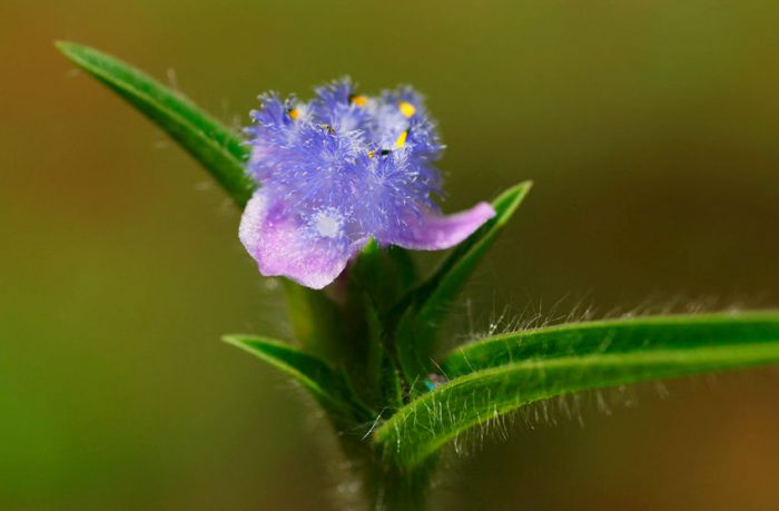 Дане трав'яниста рослина так само є многолетником. На поверхні пагонів знаходиться опушення. Зелені ланцетної форми листочки мають блискучу верхню поверхню, а кромка, нижня поверхня і піхву сильно опушене білуватими досить довгими, віддаленими волосками. Квіточки дрібні. Пелюстки на ½ частину своєї довжини зрослися і можуть бути пофарбовані у фіолетовий або насичено-синій колір. Квітки можуть бути поодинокими, але як правило, вони зібрані на щільних коротеньких завитках, що знаходяться у верхніх листових пазухах або на верхівках стебел.