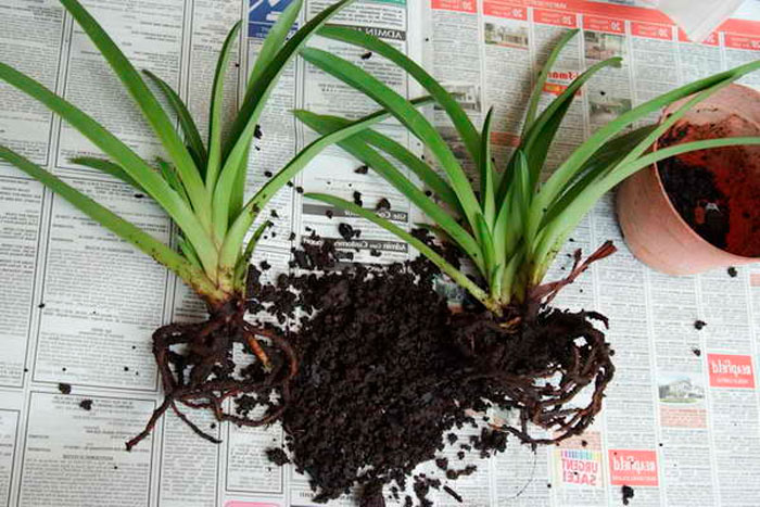 - добре зволожите субстрат в горщику, після чого вийміть з нього кущ;