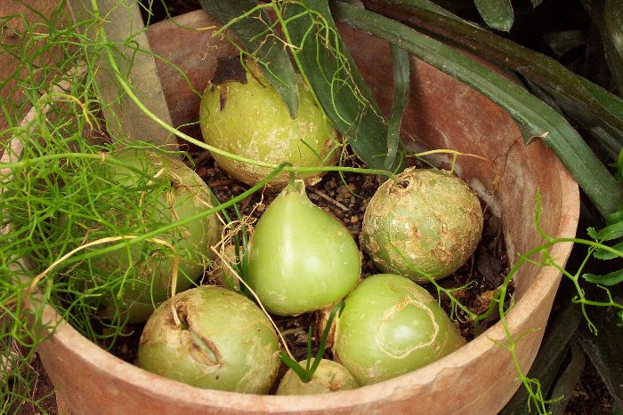 У деяких випадках після того, як рослина відцвіте, з'являється невелика коробочка, в якій знаходяться насіння. Посів рекомендується проводити безпосередньо після збору, так як насіння дуже швидко втрачають свою схожість. Висів рекомендується провести на поверхню підготовленого злегка зволоженого субстрату, який потім слід трохи ущільнити зверху. Для посіву можна використовувати універсальну покупну грунт, що продається в спеціальному магазині. До того, як з'являться перші сіянці, треба ємність накривати склом і систематично зволожувати грунт з обприскувача. Також миску рекомендується поставити в світле місце з нормальною кімнатною температурою (від 18 до 22 градусів). Через 20-30 діб після посіву повинні з'явитися перші сходи. Слід пам'ятати, що на верхній частині кожного з сіянців є оболонка насіння. Її ні в якому разі не можна видаляти, так як це призведе до загибелі рослинки. Полив проводять акуратно, так як з-за переливу можуть дуже швидко загнити молоденькі цибулинки. Також варто пам'ятати, що деякі молоденькі бовиэи потребують періоді спокою, як і дорослі. У них також як і у дорослого квітки відбувається відмирання невеликих пагонів, а через кілька місяців на їхньому місці виростають нові. Перше цвітіння спостерігається, як правило, на другий рік життя.