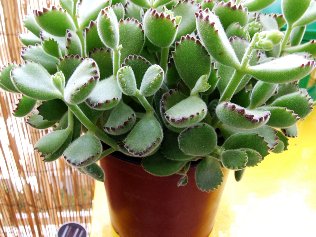 Даний вид найбільш популярний у квіткарів. Цей чагарник, що росте в диких умовах, може досягати у висоту 90-130 сантиметрів. Цільні, гладенькі листочки мають обратноширокояйцевидную форму, яку швидше можна охарактеризувати округло-трикутна. Їх довжина варіюється від 7 до 13 сантиметрів. На поверхні листових пластин і пагонів знаходиться щільний білуватий наліт з воску, з-за чого неодревесневшие частини кущика пофарбовані матовим зеленувато-сірим колірним відтінком. Кромка листової пластини має бордовий забарвлення. Червонувато-оранжеві квіточки досить маленькі, трубка віночка досягає в довжину 1-2 сантиметрів. Вони розміщені на довгому (довжина до 60 сантиметрів), товстих квітконосах, пофарбованому в бордовий колір. Є сорти з жовтими квіточками.