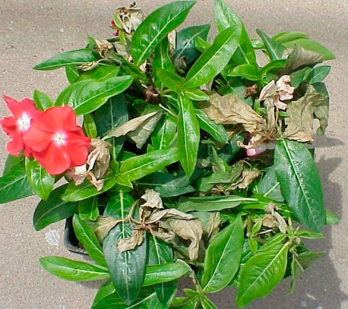 - А ось облітати бутони у катарантуса можуть з різних причин: сухе повітря, недостатній полив або недостатня кількість світла. Якщо ж полив буде надто рідкісним, то з-за нестачі вологи у куща почне опадати молода листя з верхніх частин стебел. Також це може бути пов'язано з тим, що йому холодно або темно.