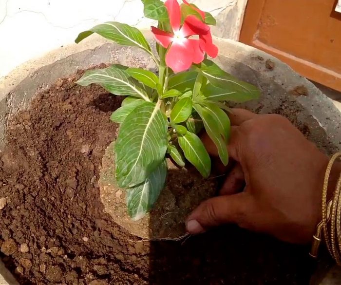 Може вийти так, що вам доведеться пересадити катарантус не 1, а 2 рази в рік. Якщо в період інтенсивного росту облітають квіти і спостерігається пожовтіння нижніх листових пластин, то швидше за все, коріння вже дуже тісно в горщику. Подивіться на отвори на дні ємності, якщо коріння тісно, то вони будуть виглядати з них. У цьому випадку рослина вкрай необхідно терміново пересадити, при цьому візьміть великий квітковий горщик. Щоб кущ можна було легше витягнути його перед пересадкою поливають. Якщо ємність виготовлена з пластмаси, то швидше за все, її доведеться розламати або розрізати, але будьте вкрай обережні, щоб не нашкодити системі коренів. В іншому випадку цвітіння припиниться.