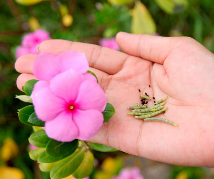 Купити насіннєвий матеріал такого рослини можна в спеціалізованому магазині. Власні насіння зі свого куща не збирають, так як вони за період вегетації не встигають визріти. Вони здатні визріти лише в природних умовах в природі. Якщо ви все-таки вирішили зібрати насіннєвий матеріал зі свого куща, тоді вам доведеться чекати досить довго. Катарантус доведеться ростити протягом осінньо-зимового періоду, забезпечивши йому при цьому максимально сприятливі умови схожі з природними: вологість і температура повітря повинні бути оптимальними і постійними, а також буде потрібно велика кількість світла. Лише на початку весни можливо насіннєвий матеріал визріє.