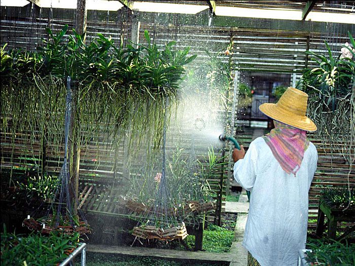 - Гарячий душ ― цей спосіб найбільше підходить для ванди. Рослина треба помістити у ванну і дуже теплою водою слід поливати його душа до тих пір, поки корінці не змінять колір на зелений. Залиште рослина на 30 хвилин, для того щоб змогла стекти вся зайва рідина. Через 60 хвилин після душу листочки треба протерти серветкою, виготовленої з натуральної тканини.