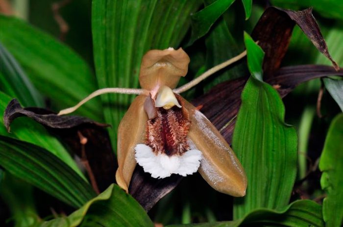 У природі їх можна зустріти тільки високо в Гімалаях, при цьому вона росте практично біля самої межі снігів. Ця рослина є холодолюбивым і має псевдобульби кулясто-видовженої форми, які в довжину досягають від 3 до 5 сантиметрів і 2-я довгими листочками. На квітконосах розміщуються від 3 до 8 штук квіточок білого забарвлення і досить великого розміру (діаметр до 10 сантиметрів). Відрізняються дані квітки формою губи. Так, вона трилопатева і має 5 добре помітних «гребінців»-виростів. Цвітіння спостерігається з зимового за початок весняного періоду.