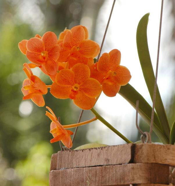 Садити аскоценду в кошик треба точно так само як в горщик. Для цього слід обрати кошик з пластику або з твердих деревних порід, що допоможе уникнути швидкого сгнивания ємності.