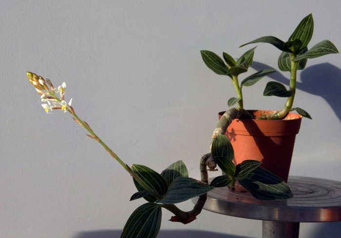 Така рослина досвідчені орхидеисты відносять до групи, яка називається «дорогоцінні орхідеї». Його цінують не за квітки, а за ефектний зовнішній вигляд листя, яка володіє неповторною фактурою, а також незвичайної забарвленням. Цвіте ця рослина, як правило, в кінці осіннього початку зимового періоду. Досить високий (до 25 сантиметрів) квітконіс виростає з верхньої частини стебла і він несе багатоквіткову китицю з дуже маленькими (діаметр приблизно 2 сантиметри) квіточками. Самі квітки забарвлені в білий колір, а їх пильовики в жовтий. Якщо умови навколишнього середовища сприятливі, то тоді цвітіння триває більше 1 місяця.
