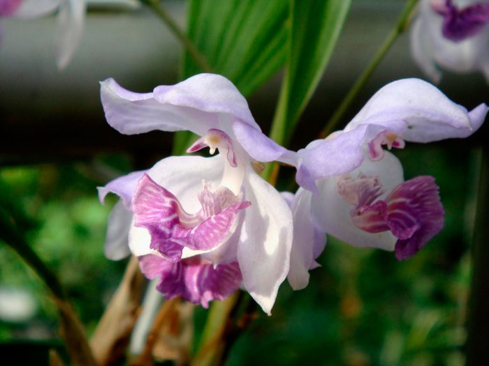 Ця рослина є одним з найбільш ефектних серед величезного числа представників родини орхідні. Його головною відмітною ознакою є красивий блакитний забарвлення квіток. Такі квіточки порівняно невеликі, їх діаметр, як правило, дорівнює 5-6 сантиметрів, проте вони неймовірно красиві і можуть позмагатися з каттлеей, яка є визнаною королевою (їх квіточки мають схожу форму). Чашолистки трохи хвилясті і розташовуються по відношенню один до одного під кутом рівним 120 градусів. Вони мають однакову довжину, проте той, що розташований вище має яйцевидну форму і є більш широким, ніж овальні бічні. Губа і пелюстки так само розташовуються по відношенню один до одного під кутом 120 градусів. Пелюстки округлі звужені біля основи, але при цьому вони дещо ширше і коротше чашолистків. Губа виступає вперед. У неї є нарости-крильця, розташовані з боків, а ще вона так само на підставі володіє звуженням і зовні схожа з увігнутою лопатою, краї якої бахромчаті або трохи порізані.