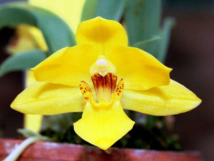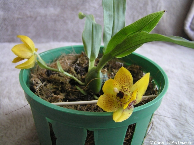 Даний вид найбільш поширений у російських квітникарів. Чотиригранні, овальної форми псевдобульби у висоту досягають 2 см, а завширшки ― 1,5 сантиметра. Чашолистки і пелюстки мають чисто жовтий колір, а на підставі губи і поверхні лопатей, а також на внутрішній частині колонки є безліч цяток бордового кольору.