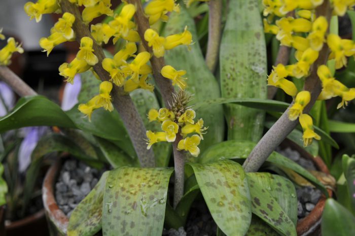 У зимовий час полив повинен бути помірним. В період цвітіння рослина потрібно поливати після того, як просохне верхній шар субстрату. Під час холодного періоду спокою полив припиняють зовсім. Рослина однаково негативно реагує і на пересушування і на перезволоження субстрату.