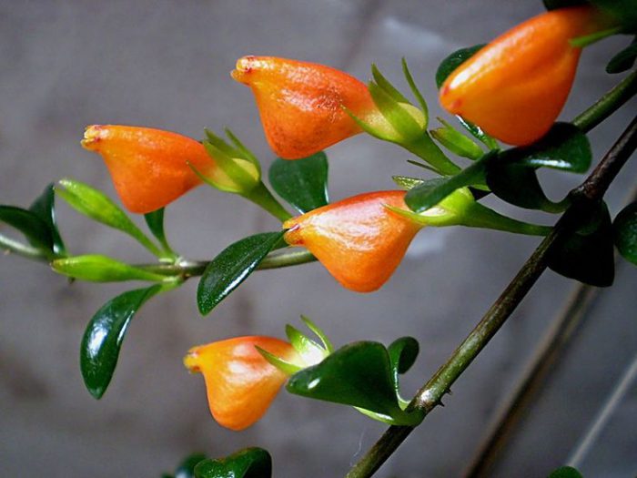 Така рослина є полуампельным і має слабоветвящиеся стебла. Глянцеві, м'ясисті, яскраво-зеленого кольору листочки мають еліптичною формою. Вони не мають опушення, а в довжину досягає від 2 до 4 сантиметрів. В листових пазухах утворюється від 1 до 3 штук квіточок. Віночок складається з зрощених воскоподібних пелюсток яскраво-оранжевого забарвлення, а знизу утворює здуття. По закінченню цвітіння опадання листя не спостерігається. На даний момент така рослина іменується нематантус щетинковый (Nematanthus strigillosus) і воно відноситься до роду нематантус.
