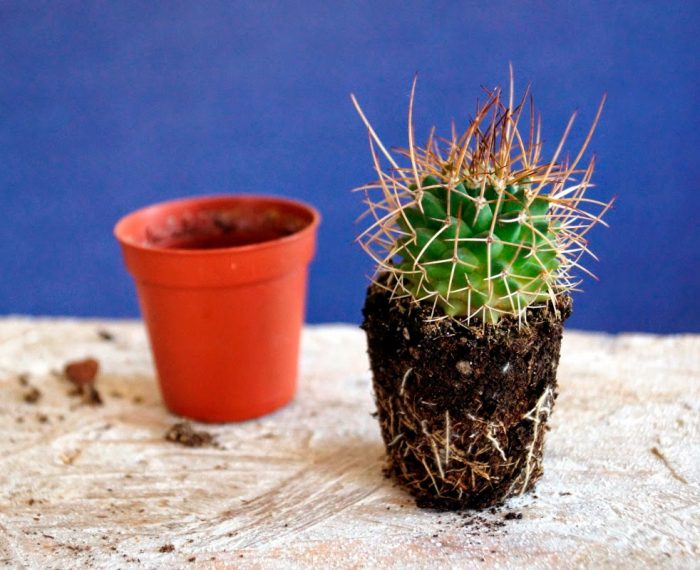 Перш ніж приступити до пересадження куща, треба обов'язково подбати про захист рук від гострих голок, для цього використовують товсте рушник або петлі з дроту. Обхопіть ними стебло, витягніть кущ з старої ємності і пересадити його в новий горщик. На дні нової ємності зробіть дренажний шар товщиною 10-20 мм, для цього використовують керамзит. Не забудьте засипати його тонким шаром ґрунтосуміші. Помістіть в ємність кущ таким чином, щоб його коріння дістали до дна, але при цьому не були загнутими догори. Якщо ви пересідає дорослий кактус, тоді у нього обов'язково зберігають ком землі на коренях цілим. Обережно заповніть всі порожнечі в горщику свіжим субстратом, причому його потрібно трохи утрамбувати. Кореневу шийку необхідно засипати шаром піску. Пересаджений кущ поливають невеликою кількістю води.