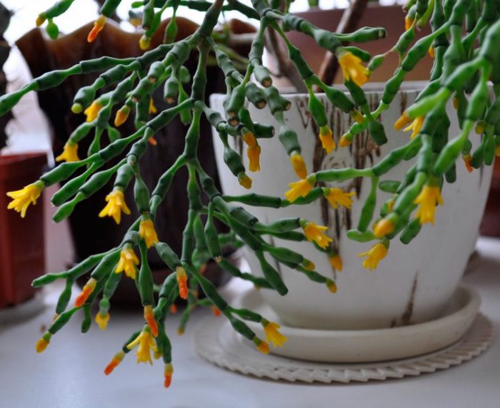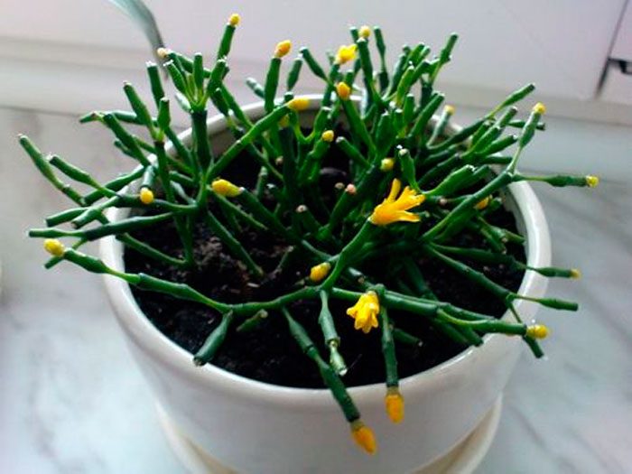 У зимовий час у хатиоры спостерігається закладка квіткових бруньок, але для цього йому потрібна прохолода (від 12 до 14 градусів). Зацвітає кущ в квітні або травні.