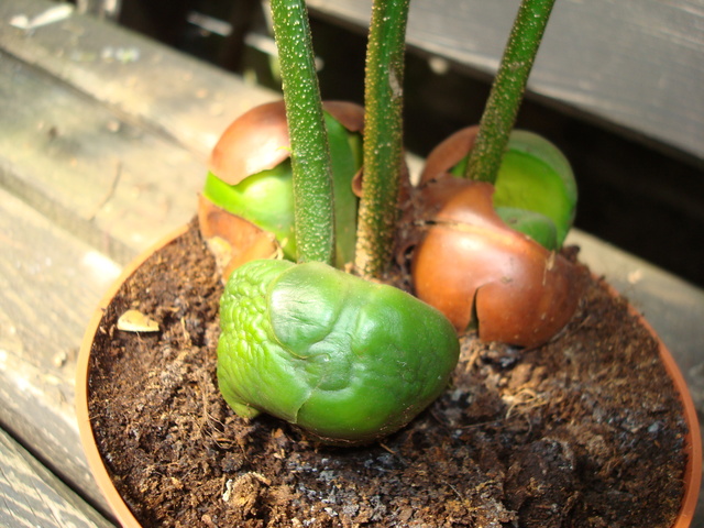 Особливістю такої рослини, як кімнатний каштан (кастаноспермум) є дві великі сім'ядолі, які дуже схожі з плодами каштана. З цих сім'ядоль і піднімається втеча самої рослини.
