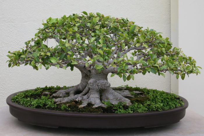 Рослина фікус микрокарпа являє собою мініатюрне деревце, яке ще називають бонсай. Бонсай є мистецтво вирощування мініатюрних дерев у квартирних умовах, які зовні дуже схожі з їх великими родичами.