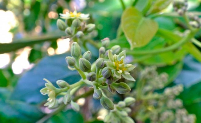 Як правило, у трирічному віці авокадо починає цвісти. На деревце розпускаються зелено-жовтуваті квіточки. Для запилення квіток знадобляться мінімум 2 рослини, так як воно повинно бути перехресним.