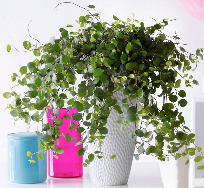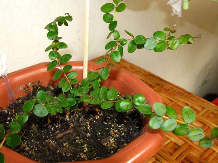 Незважаючи на велику кількість видів, в домашньому квітникарстві використовується, як правило, лише один ― мюленбекия охоплює або сплутана (Muehlenbeckia complexa). Її малюсінькі (в діаметрі від 0,6 до 1,5 сантиметрів) листочки, що мають форму овалу, пофарбовані в темний зелений колір, а по краях і вздовж жилок вони відливають червоним.