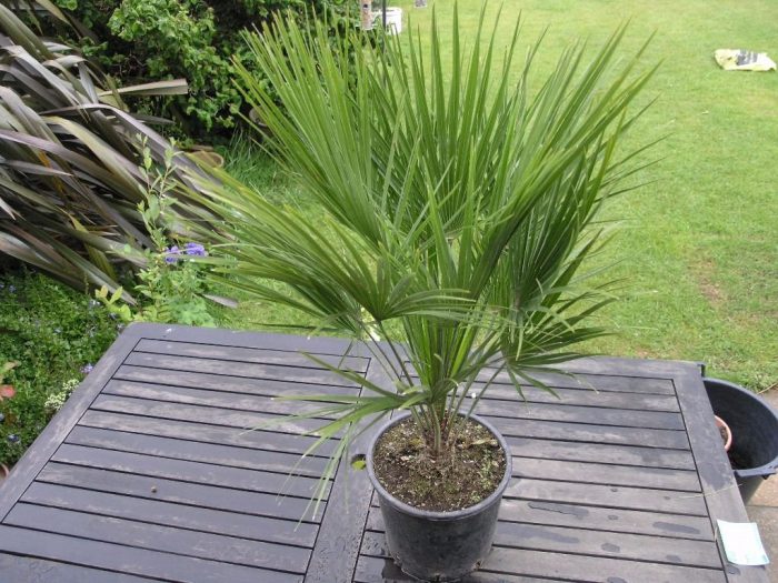 У літній час пальму рекомендується винести на свіже повітря. І часто її ставлять на терасах або верандах.