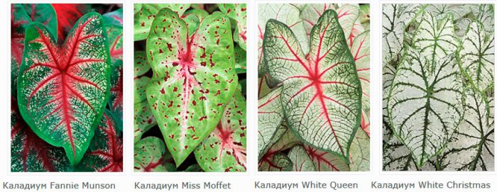 В даний час в квіткових магазинах продаються каладиумы, які є гібридами, створеними завдяки схрещуванню декількох видів. У кожного окремого гібрида своя індивідуальна забарвлення і неповторні візерунки.