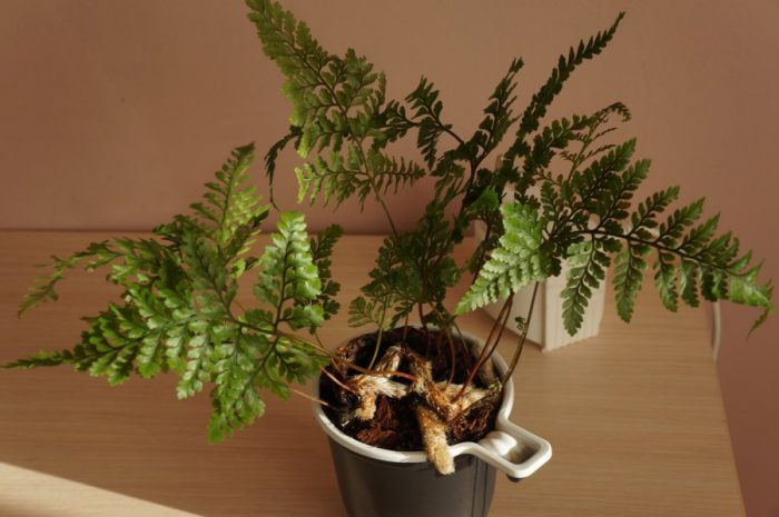 У кімнатних умовах такої папороть часто виховують в підвісну кошику. Конні вільно звисають з зовнішньої сторони горщика, а зверху вони вкриті густим листям.