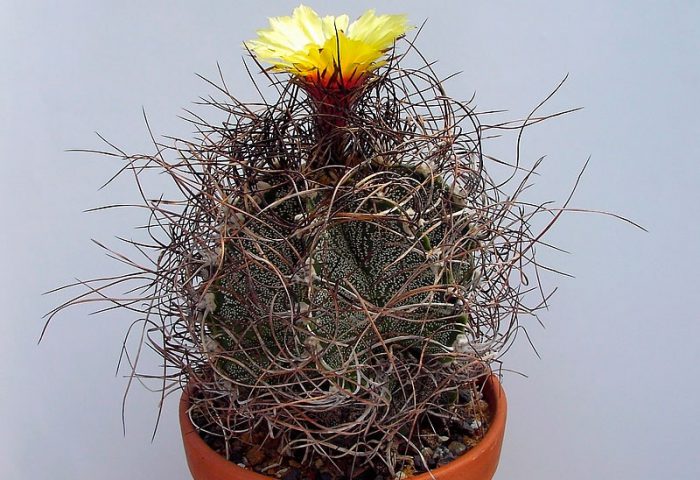 Росте повільно і не має колючок. Дуже схожий з зелено-сірим кулькою. У діаметрі може сягати 15 сантиметрів. Цю рослину ще називають «кактус ― морський їжак». Налічується 6-8 ребер, посередині яких знаходяться пухнасті, круглі ареоли, пофарбовані в сіро-білий колір. Квіточки в діаметрі досягають 7 сантиметрів і з'являються в період з липня по вересень. Вони пофарбовані в жовтий колір і мають червонувате серединку. Навесні погано переносить прямі промені сонця. Переводити на літній режим кактус треба поступово. Так, спочатку його притіняють, а після звикання такий кактус можна сміливо ставить на саме сонячне місце.