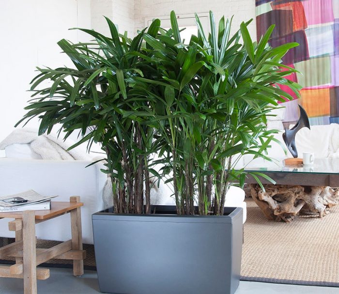 Але рапис високий так же здобув велику популярність після того, як у великій кількості з'явилися різні офіси, бутіки, супермаркети і так далі. Ця пальма може вирости до 3 метрів у висоту.