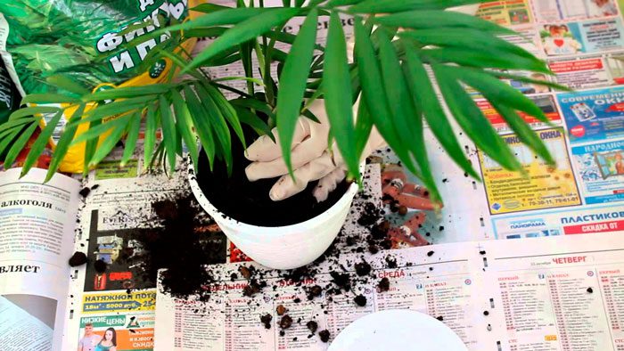 Так, зовсім юні рослинки потрібно пересаджувати щороку, і найкраще це робити у весняний час. А доросле пальму пересаджують, тільки якщо її коріння розрослися настільки, що їм стало тісно в горщику (при цьому вони можуть почати піднімати сама рослина).