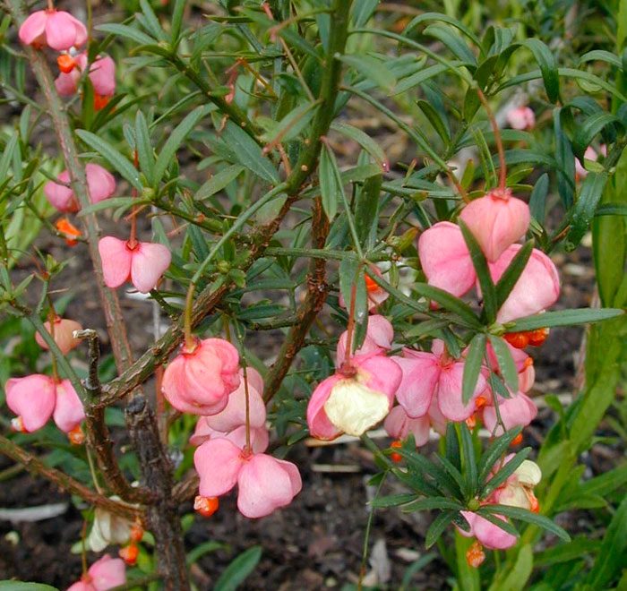 Родом такий вид з помірних широт Європи і Азії. Він представлений вічнозеленим багаторічним чагарником. Спрямовані вгору стебла мають довжину близько 100 см, поки вони молоді, їх забарвлення зелене, однак через якийсь час він змінюється на сірий. На поверхні пагонів є безліч бородавок. Довжина вузьких ланцетних листових пластин близько 40 мм, їх зворотна поверхня ― блідо-сиза, а лицьова ― зеленувата. На квітконосах довжиною 20 мм формуються зелені або червоні квітки, які можуть бути поодинокими або зібраними в пучки по 2 або 3 штуки. Плід представлений коробочкою, всередині якої знаходяться насіння темно-червоного кольору, вкриті на ½ частину помаранчевими присеменниками. Цей дуже ефектний вигляд найчастіше прикрашає парки і садові ділянки. Для його розмноження використовують метод ділення куща, живцювання, насіннєвий спосіб і вкорінення пагонів.