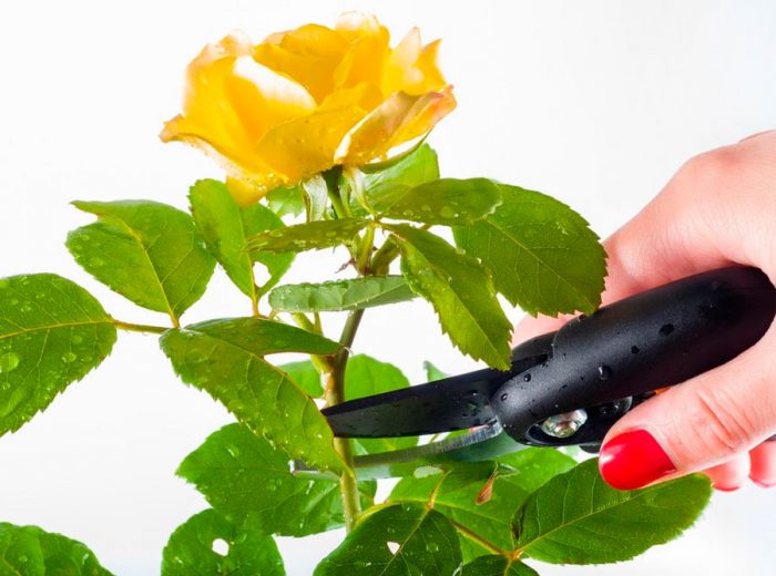 - Всі листові пластини, які зів'яли, необхідно обрізати ножицями або секатором, а ще потрібно видалити всі сухі і почорнілі пагони.