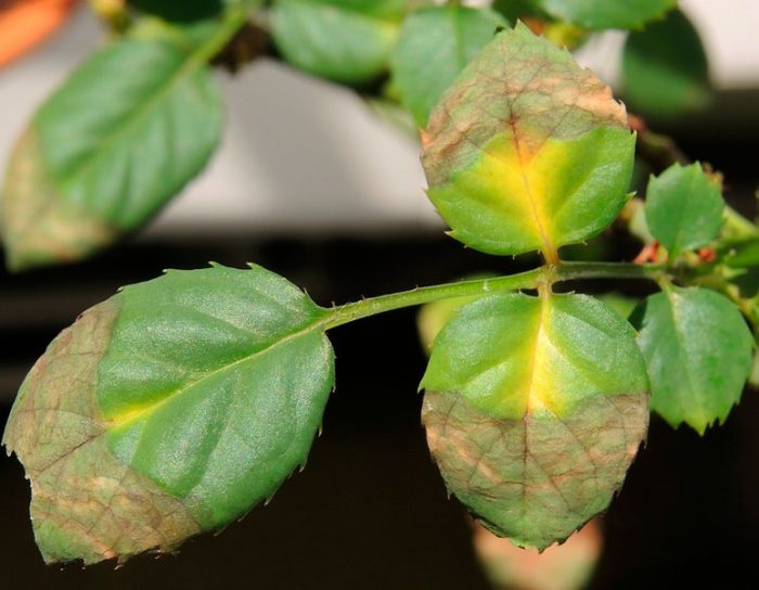 Якщо ґрунтосуміші міститься невелика кількість заліза, то кущ так само може почати жовтіти, тому що в цьому випадку його вражає хлороз. Для підгодівлі використовують Ферровит або Хелат заліза, при цьому потрібно робити все по інструкції.