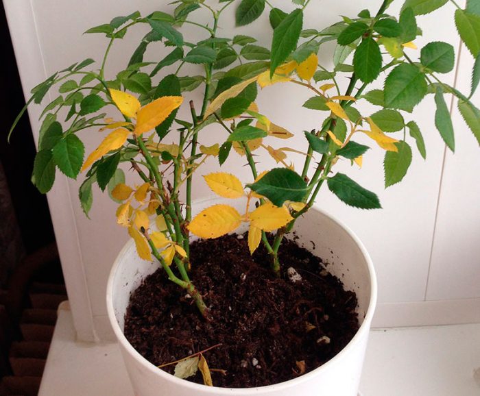 Якщо квітка був придбаний у магазині, і ви його не встигли пересадити в новий горщик, то це необхідно зробити найближчим часом. Той субстрат, в якому росте троянда в магазині, містить дуже мало поживних речовин. Також кущ може почати жовтіти з-за грунтосумішей, в яку він був пересаджений, якщо вона низької якості.