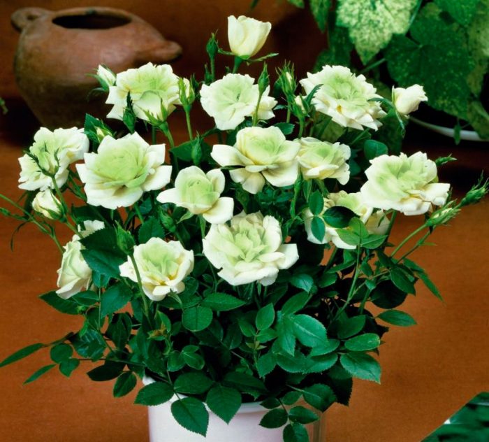 Якщо створити розі оптимальні умови, що вона буде цвісти кожні 8-9 тижнів протягом року. Чарівний кущ зачаровує своїми дрібними, декоративними квітками різноманітного забарвлення. Щоб цвітіння було пишним, рослина містять узимку в прохолодному місці, забезпечивши йому спокій. Для цього треба обрізати пагони троянди до 10 див.